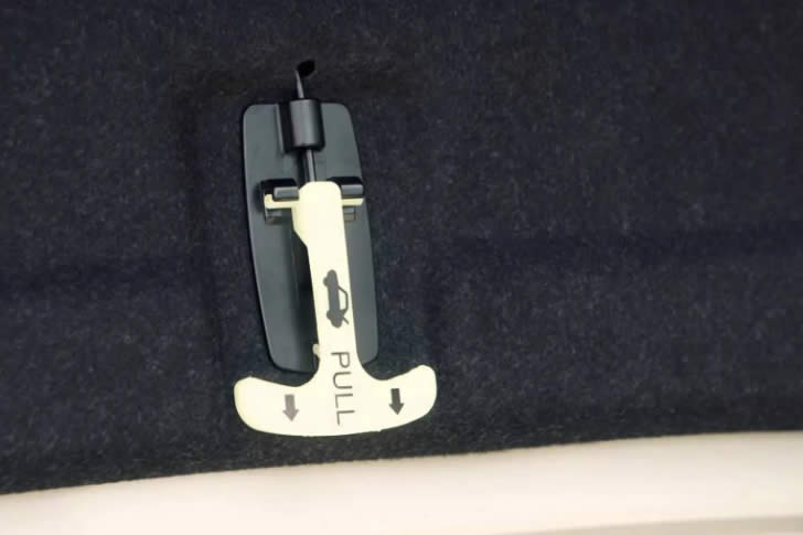 Si alguna vez te quedas encerrado en el maletero (raro, pero posible en un accidente o broma), busca a lo largo de la tapa interior del maletero un tirador en forma de T que brilla o un cordón. Al tirar de él, se abre el pestillo del maletero desde dentro.