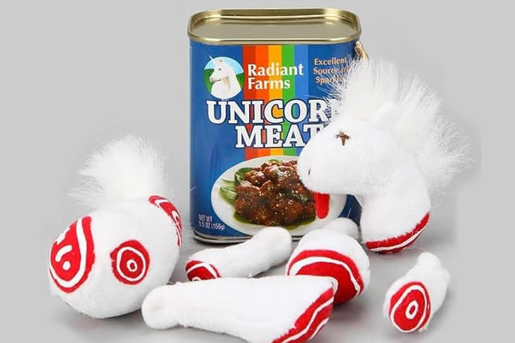 Spoiler: it’s not real meat. But that didn’t stop ThinkGeek from marketing a product called “Canned Unicorn Meat.” The tin was filled with glittery stuffed unicorn parts and labeled as “magic in every bite.” Originally a joke item, it sold out faster than expected and became a collector’s item.