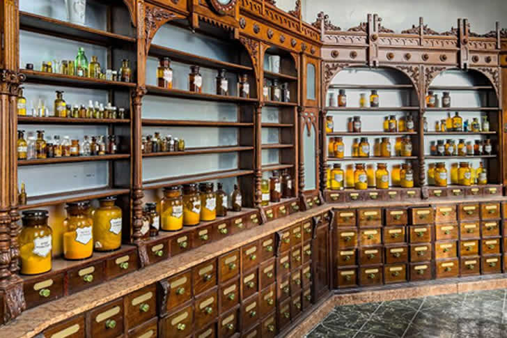 Step aside, CVS — 100 years ago, pharmacies in Bucharest looked like something out of a wizarding movie. Shelves lined with mysterious bottles, wooden counters carved like they belonged in Dracula’s summer cottage, and not a single fluorescent light in sight.