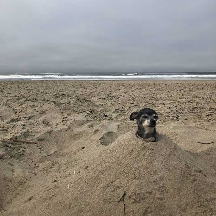 This dog’s owner sent her a sweet photo of her pup and boyfriend bonding at the beach. But judging by the dog’s expression? He is not okay.