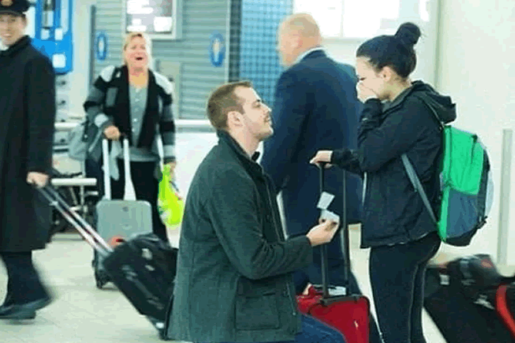 This man chose to propose to his partner as she returned from a trip, right at the moment she walked through the gate. Everyone in the background couldn’t hide their excitement for the charming couple — and most importantly, she said yes!