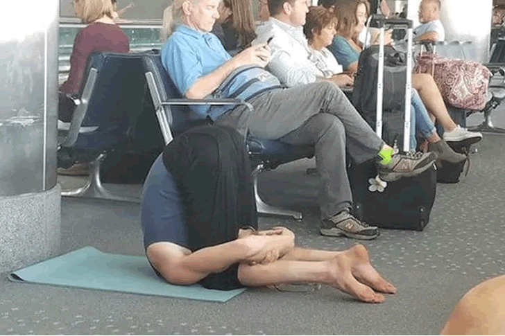 So this yoga lover made the most of their time at the airport and did their exercises right out in public. Sometimes, you just have to let it all out!