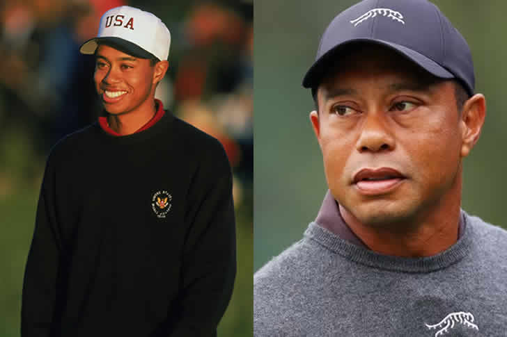 Tiger Woods, aos 49 anos, já foi o jovem fenômeno que dominou o golfe nos anos 90. Naquela época, ele era imbatível, vencendo o Masters de 1997 com apenas 21 anos, revolucionando o esporte com talento e carisma. Hoje, ele segue competindo, com uma aparição marcante no PGA Championship de 2024, mesmo carregando as marcas de lesões e cirurgias no corpo.