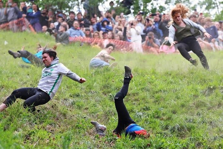 Every spring in Gloucestershire, dozens of brave (or reckless) people chase a wheel of cheese down a terrifyingly steep hill. The first person to reach the bottom wins the cheese—and probably a few bruises. The Cooper’s Hill Cheese-Rolling Festival is world-famous for its wild visuals and inevitable wipeouts.