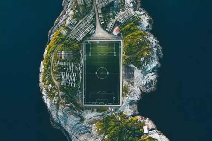 然而,對於足球迷來說,亨寧斯韋爾或許是個夢想之地。如今聲名遠播的足球場,已成為這個小鎮最受歡迎的景點之一。許多攝影師從不同角度捕捉球場的風采,其中透過無人機拍攝的空拍照更是備受矚目。能想像在如此壯麗的風景中踢足球,光是想像都令人感到無比美妙!