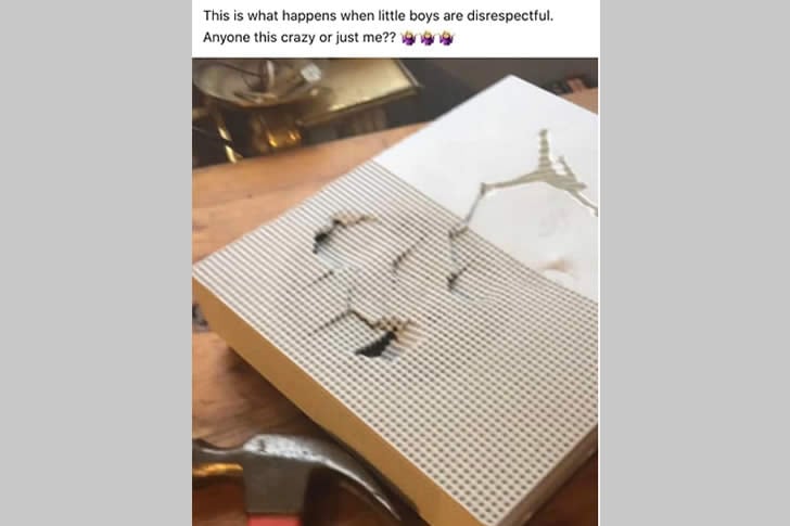 Top Comment:“My son was disrespectful so I’m going to teach him that the way you force people to respect you is by terrifying them while they watch you destroy their property,” is what that should really be captioned.